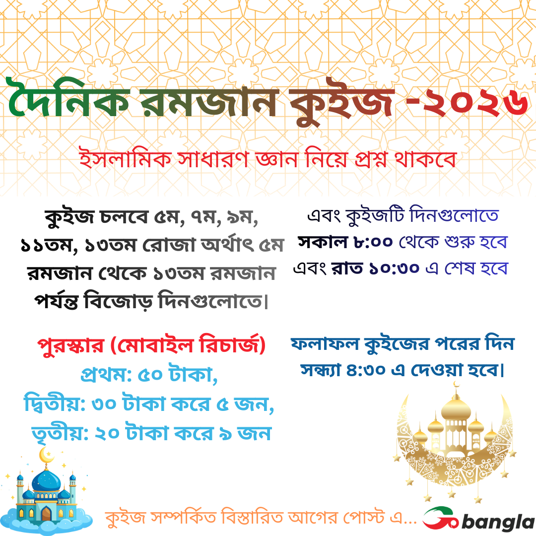 🌙 রমজানের পবিত্রতা বজায় রেখে জ্ঞান অর্জনের এই আয়োজনে আপনিও অংশ নিন এবং জিতে নিন আকর্ষণীয় পুরস্কার!
