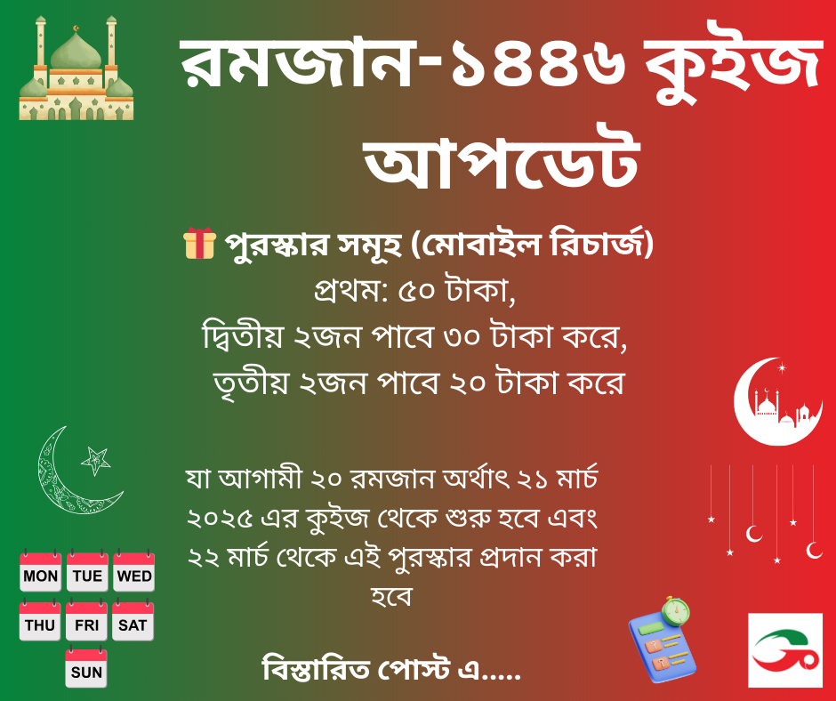 🌙 রমজান-১৪৪৬ কুইজ | প্রতিদিন জিতে নিন মোবাইল রিচার্জ! 🎉